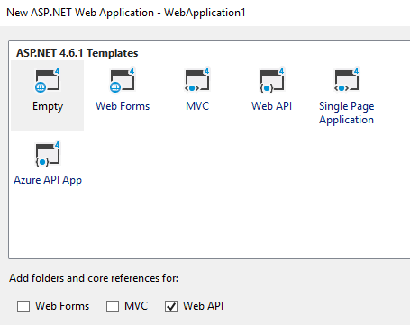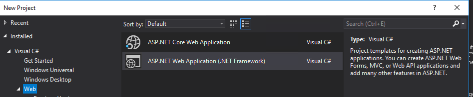 of project types to choose from, but the one we need is called ASP.NET Web Application: