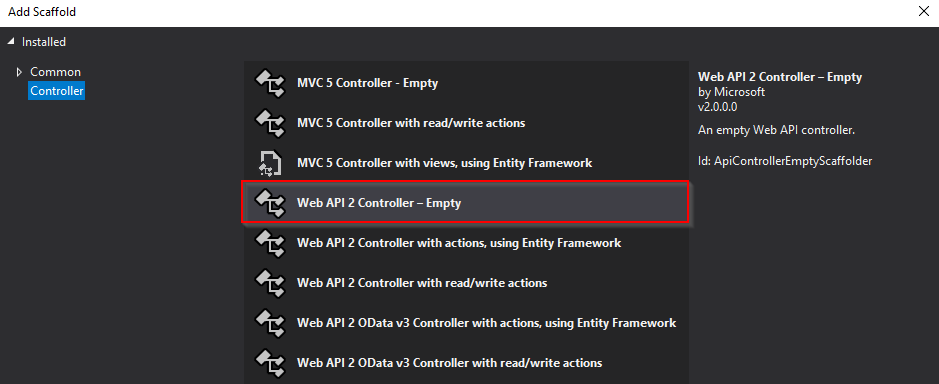 The next thing is to create a new controller this is done by right clicking Controller -> Add-> Controller: